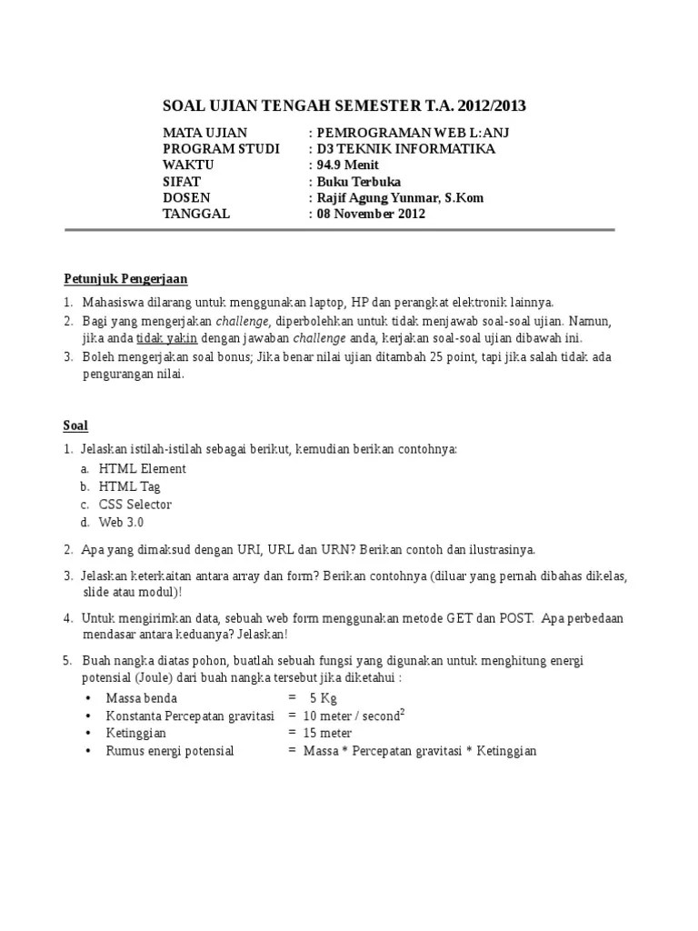 Soal Informatika : Soal Ujian Utama Algoritma Pemrograman Manajemen Informatika D3 Pdf / Dengan kerendahan hati, kami mengucapkan terima kasih kepada semua pihak yang telah membantu kami dalam menyelesaikanâ.