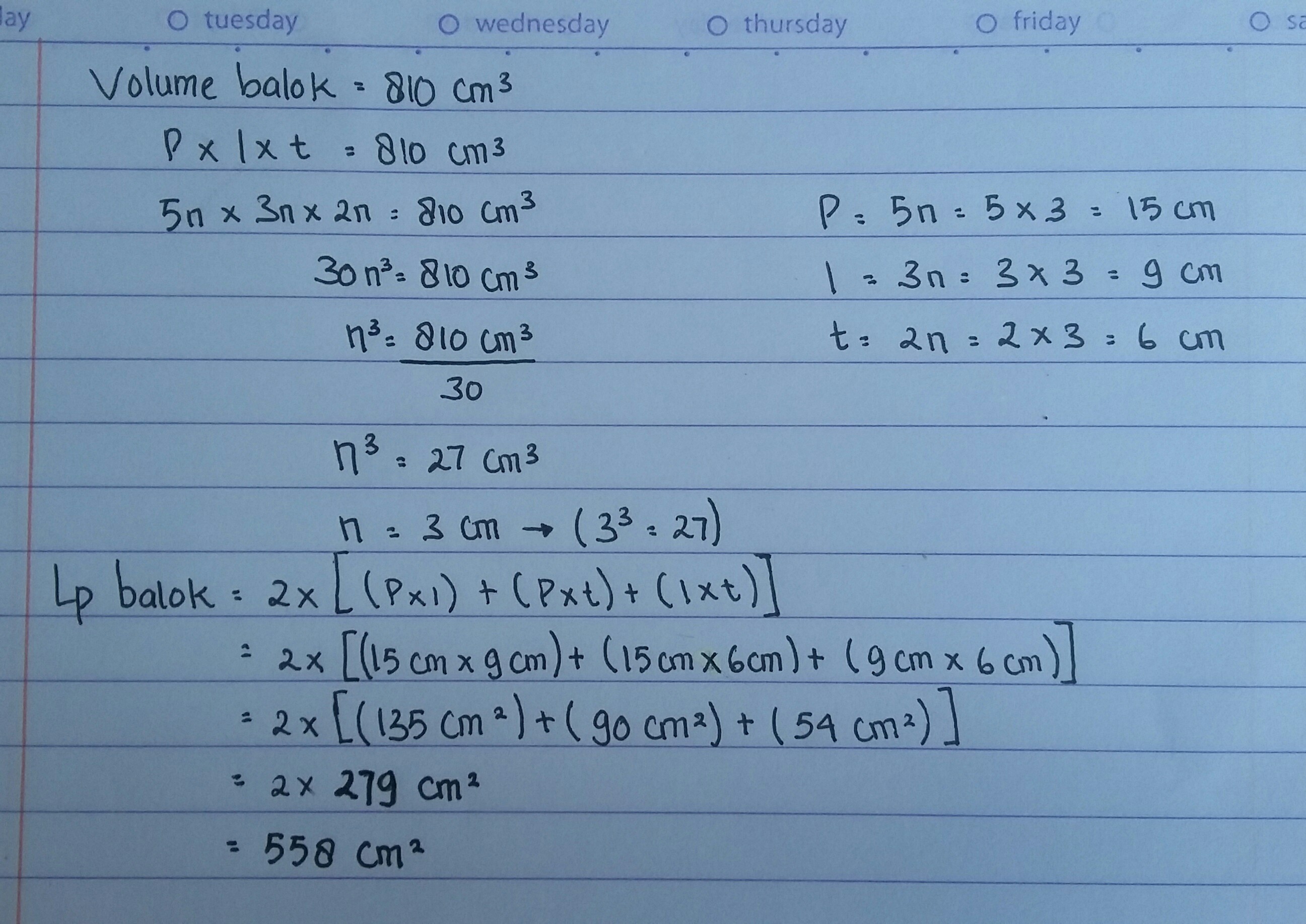 Soal 2 • perbandingan panjang, lebar, dan tinggi suatu balok 2:3:5.